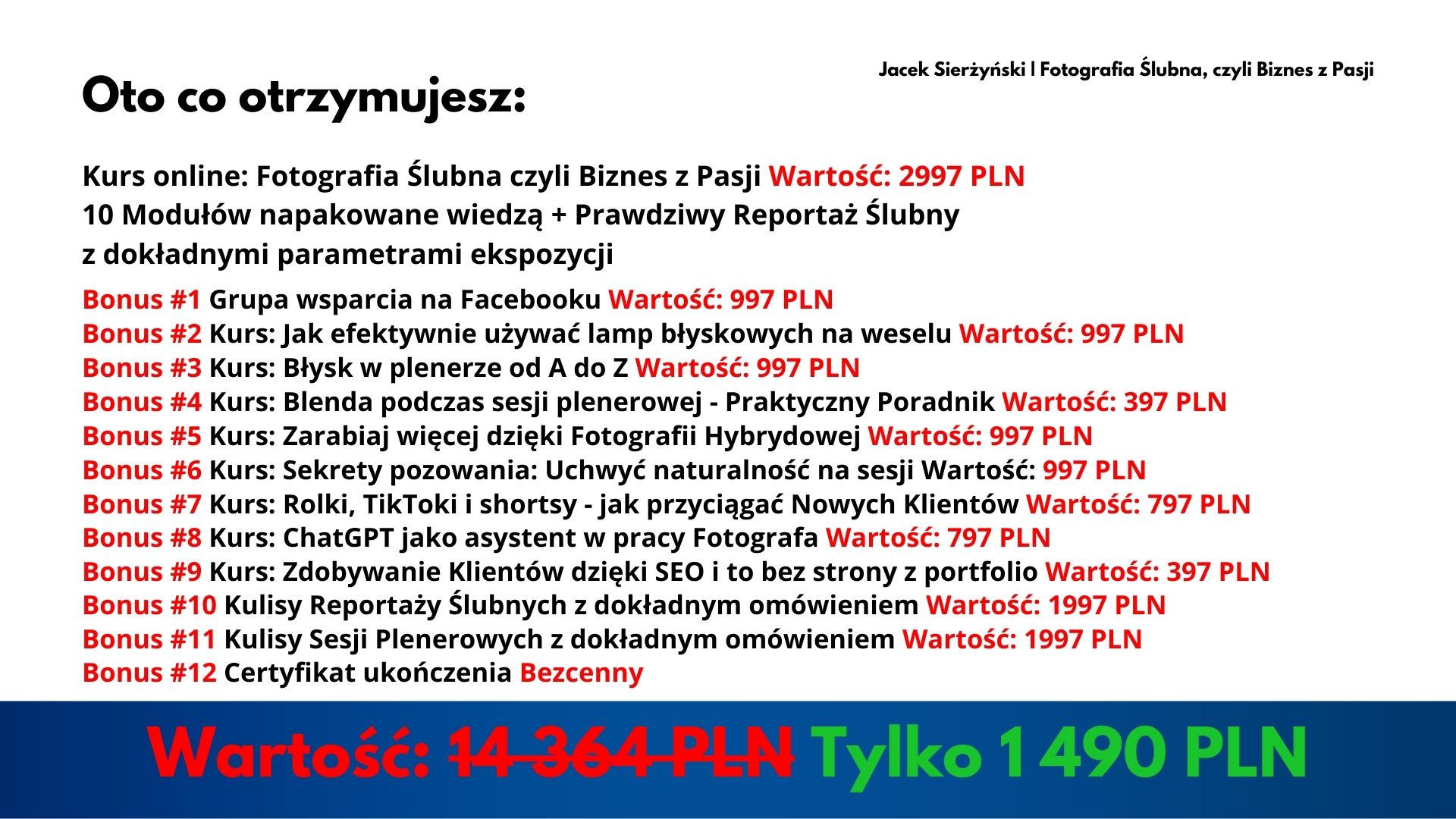 10 Modułów napakowanych wiedzą + Prawdziwy Reportaż Ślubny z dokładnymi parametrami ekspozycji